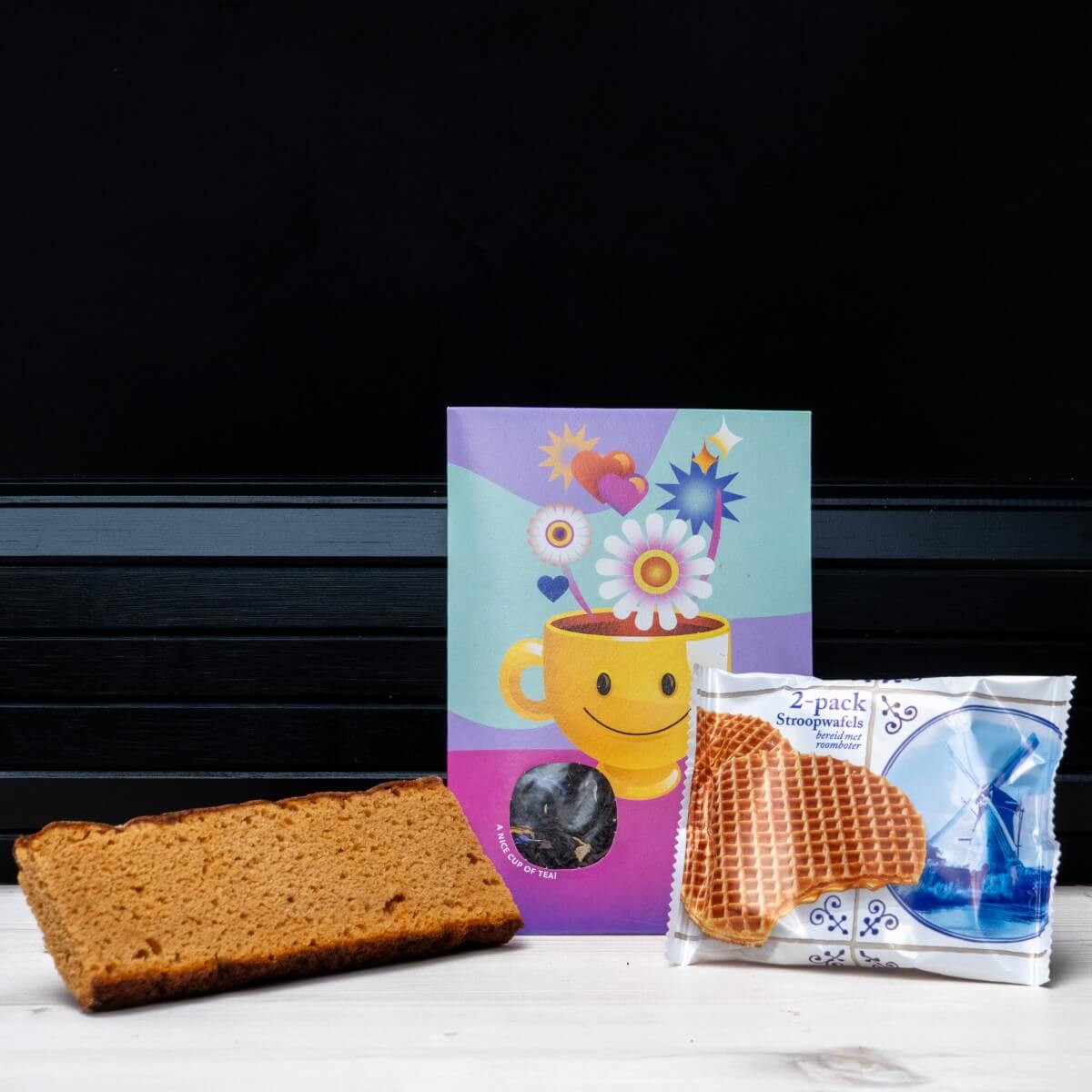 Perfect als relatiegeschenk, bedankje, of verrassing voor expats of familie in het buitenland. De combinatie van thee, koek en stroopwafels maakt dit brievenbuscadeau een moment van puur Hollands genot.